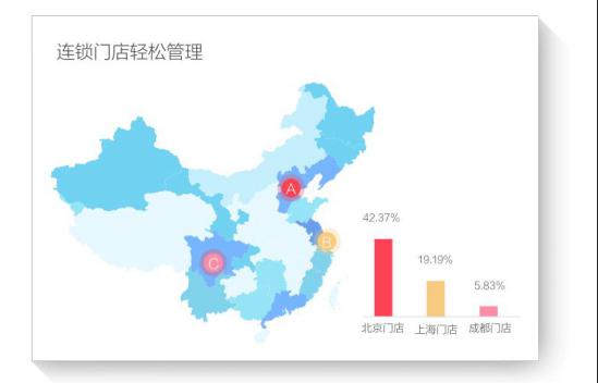 2、連鎖門店管理:在系統的后臺可以監控每個門店的收入,輕松的管理門店的銷售數據,及時調取數據分析結果。